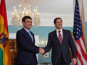 - Jose Luis Lupo, ministro de Presidencia, ha ocupado cargos ministeriales en los mandatos de Paz Zamora, Hugo Bánzer, Jorge ‘Tuto’ Quiroga y desde los primeros días de su nuevo cargo ha tenido reuniones con el FMI, el BM y con el Secretario de Estado de EEUU, Marco Rubio.